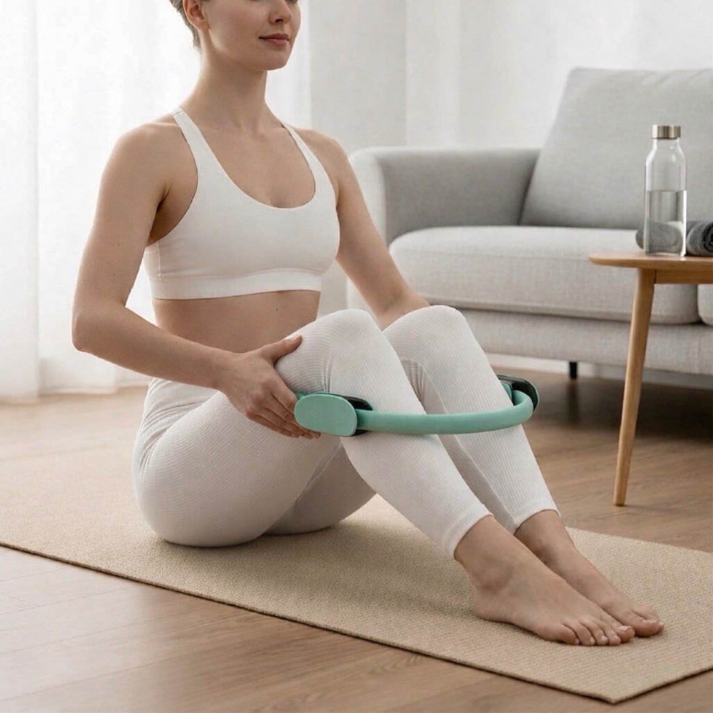 Integriere den Ring in deine tägliche Routine. Oberschenkel, Arme und Beckenboden werden spürbar aktiviert.